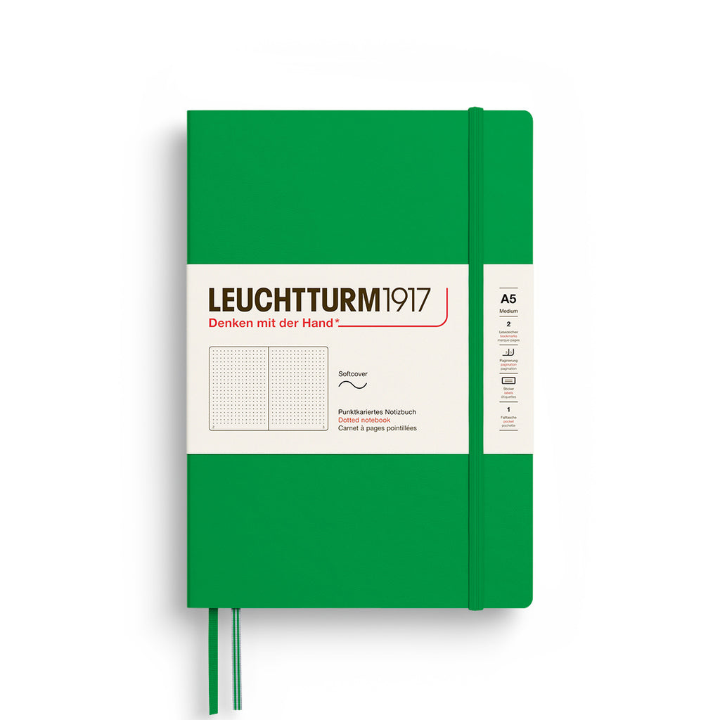 Het medium Dots A5 formaat van Leuchttrum biedt niet alleen het ideale formaat voor een breed scala aan toepassingen, maar ook een uitgebreid scala aan kleuren en linialen. Veel van deze edities verschijnen daarom ook in dit standaard notebookformaat.
