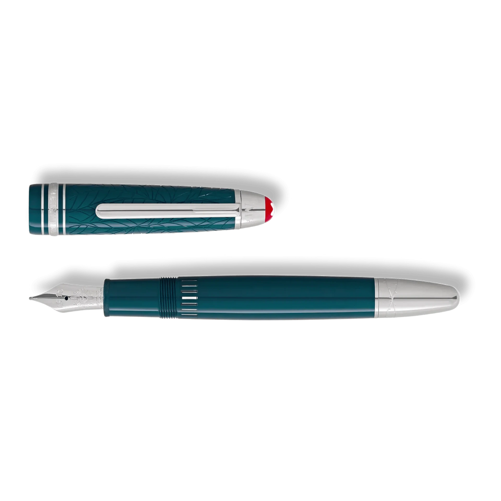 Geïnspireerd door William Shakespeare’s tijdloze tragedie Romeo & Juliet belichaamt deze Montblanc Meisterstück Romeo & Juliet LeGrand Fountain Pen de essentie van onvoorwaardelijke liefde. De pen, opgedragen aan Romeo, is vervaardigd uit diep teal-kleurig edelhars, een subtiele verwijzing naar de betoverende tuinscène waarin de geliefden elkaar vinden. De contrasterende platina-gecoate details versterken het verfijnde karakter van dit luxe schrijfinstrument.