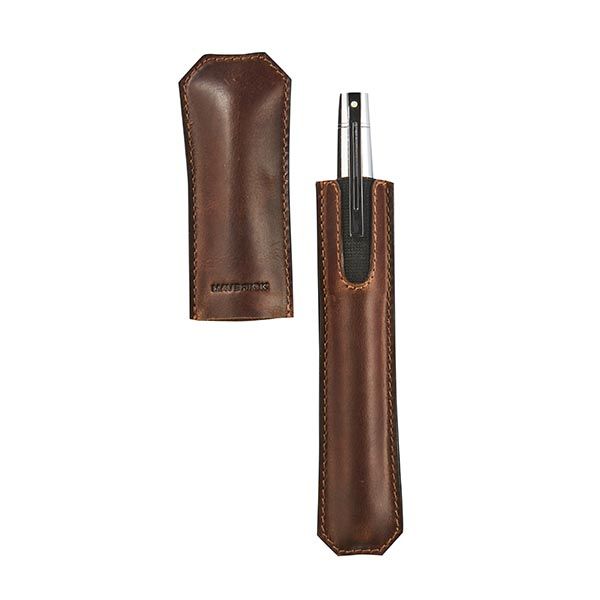 Bewaar je pennen in stijl met de Maverick Lederen Penkoker Bruin, vervaardigd van plantaardig gelooid volnerf rundsleder met een luxe oily pull-up afwerking. Dit hoogwaardige leder heeft een warme, natuurlijke uitstraling en wordt alleen maar mooier naarmate je het gebruikt.