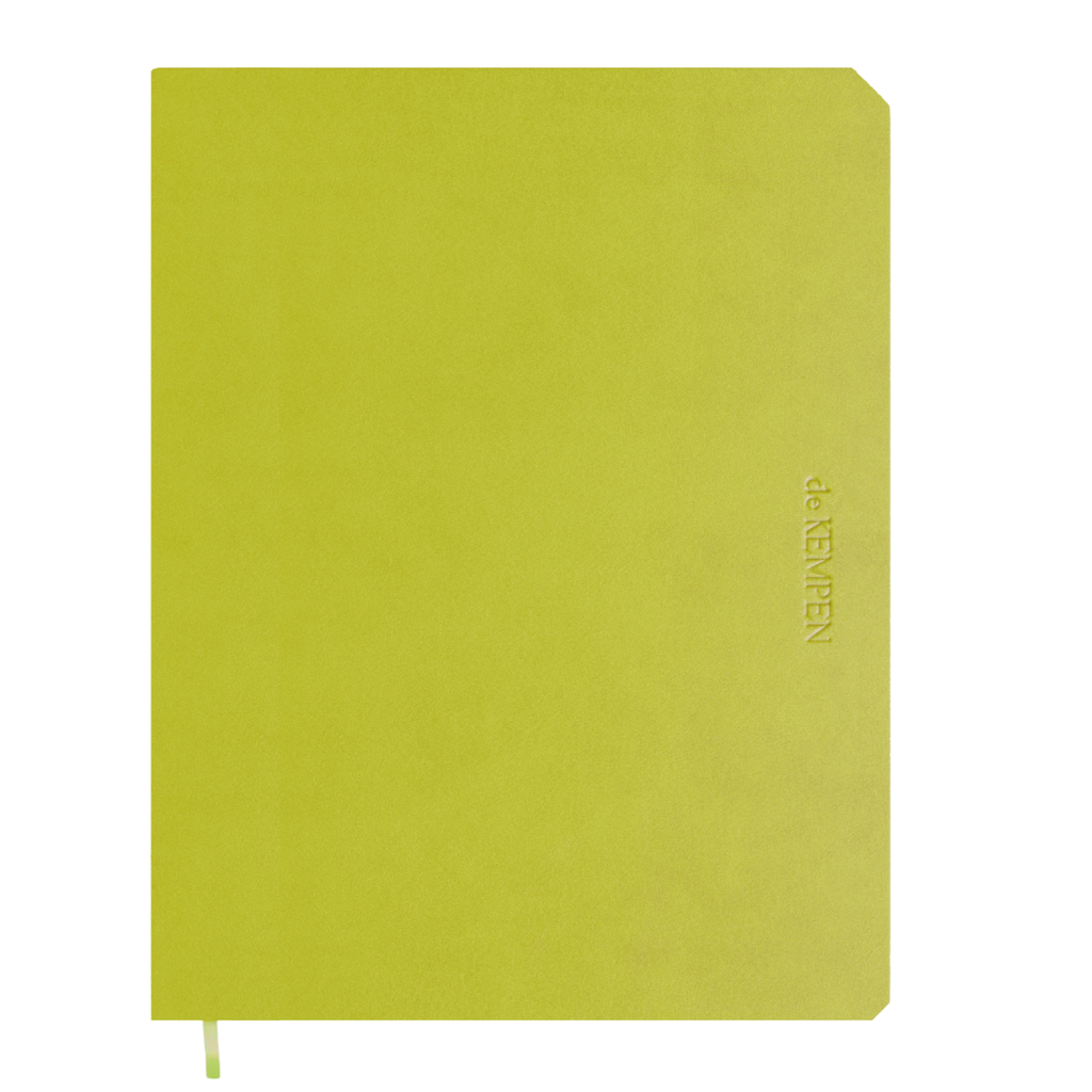 De zachte PU-kaft in levendige limoengroene tint geeft het boek een moderne uitstraling, terwijl de vlakliggende binding zorgt dat het notitieboek comfortabel open blijft liggen. Dankzij het leeslint en de gekleurd afgewerkte randen is het ook nog eens een lust voor het oog. Een duurzaam, elegant en inspirerend notitieboek voor dagelijks gebruik.