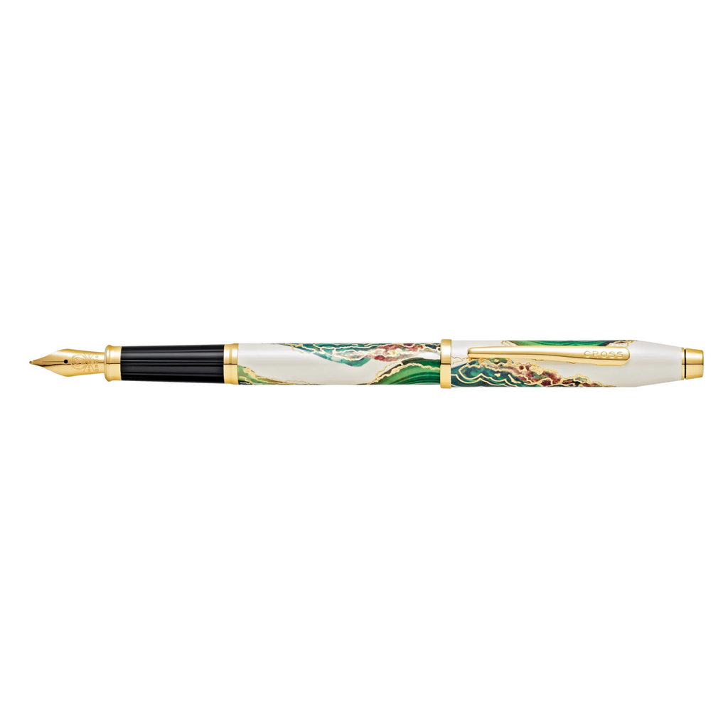 De Cross Wanderlust vulpen in het Borneo patroon is geïnspireerd op de weelderige groene regenwouden van Borneo. Rijke, wervelende kleurpatronen op een ivoorkleurige metallic lak trekken de aandacht naar de vergulde gravures en sierlijsten.