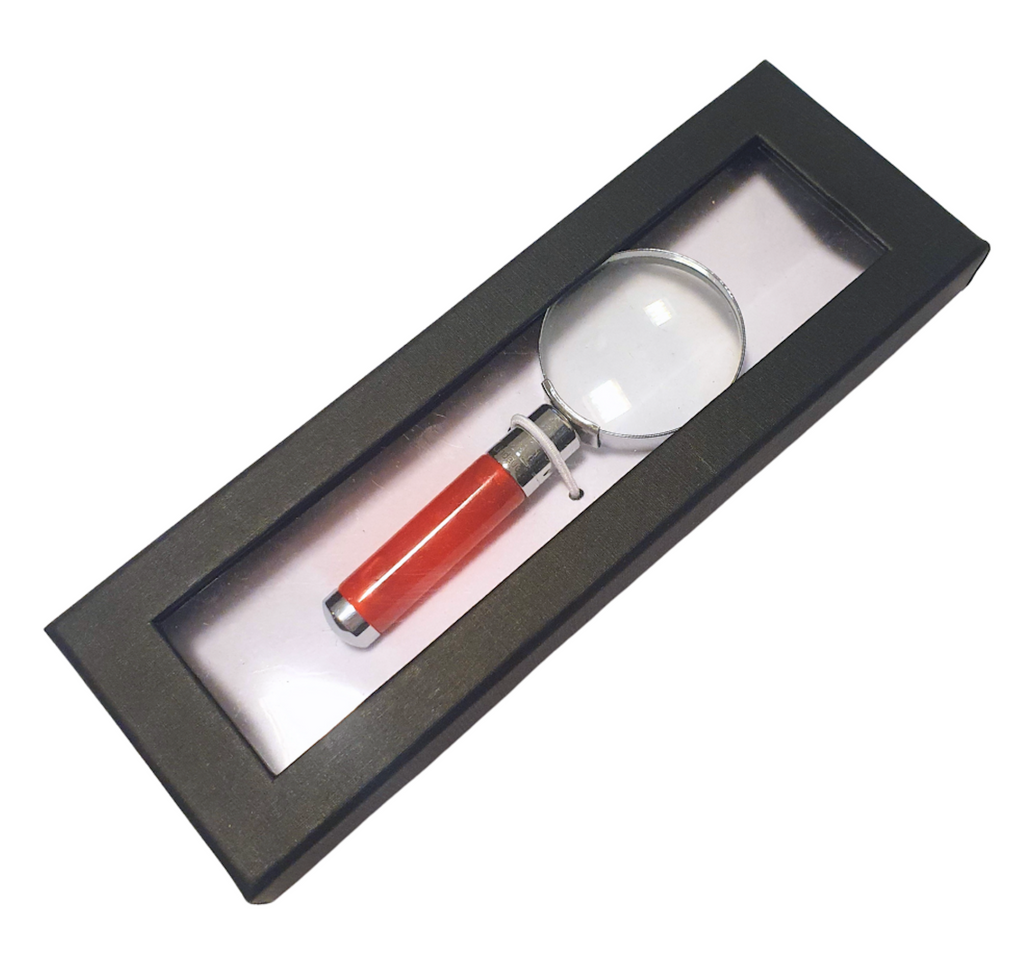 The magnifying glass has a diameter of 40 mm. Can be used for reading or studying an object. Super handy! Product dimensions: 10 x 4 x 1.3 cm (lxwxh)